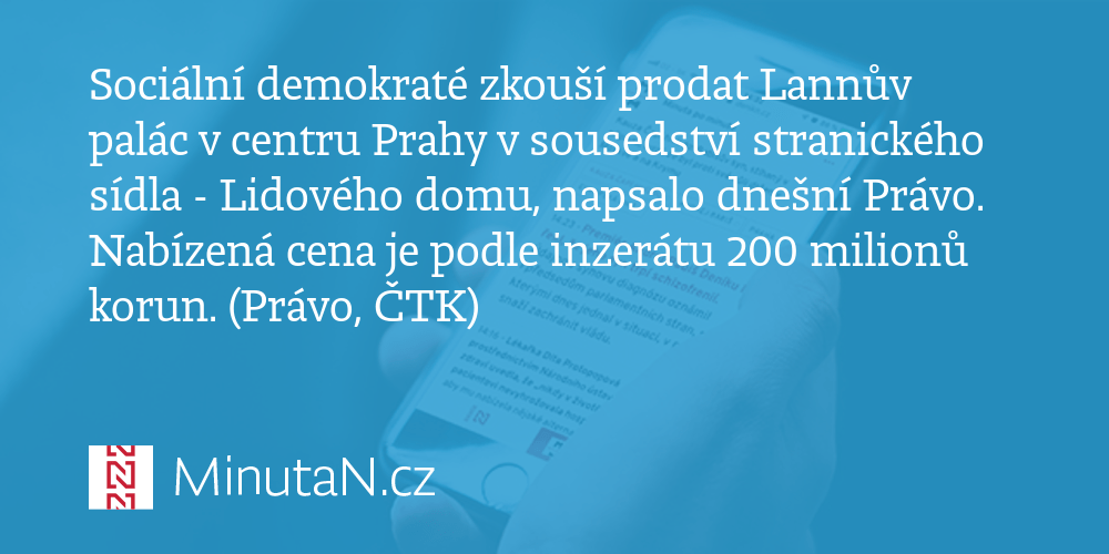 18 hours ago · sociální demokracie se snaží prodat lannův palác na novém městě v centru prahy.